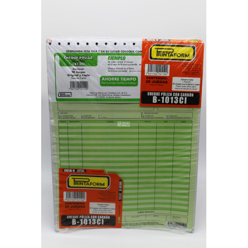 POLIZA DE CHEQUE T. CARTA CON PAPEL CARBON
